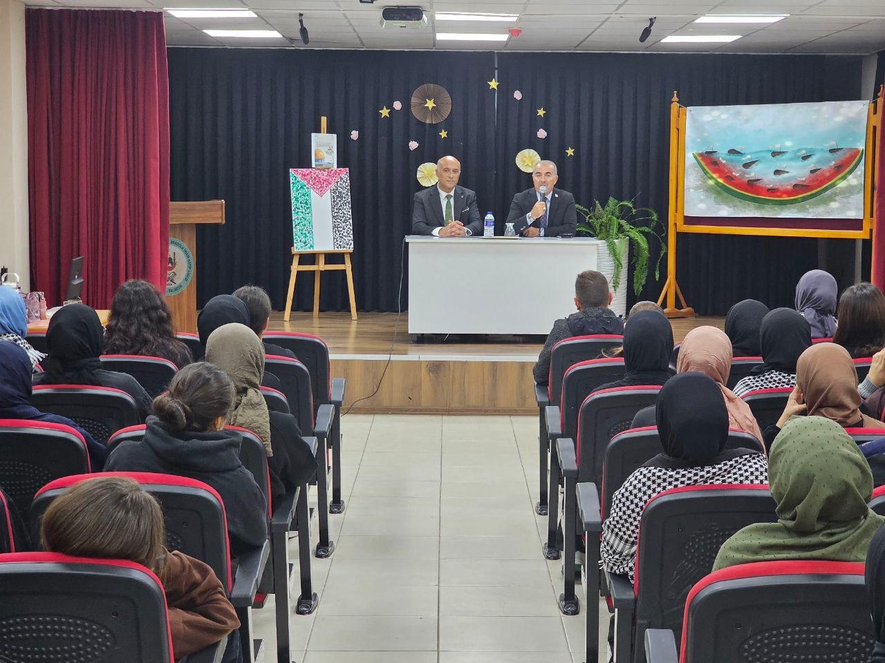 Bu kapsamda İl Millî Eğitim Müdürümüz Murat Demir, Dr. Ayşe Hümeyra Ökten Kız Anadolu İmam Hatip Lisesi öğrencileriyle bir araya gelerek Filistin ve Gazze'de yaşanan insanlık dramı üzerine sohbet etti. Müdürümüz, öğrencilerimizin duyarlılığını artıran bu tür etkinliklerin önemine değinerek, barış, adalet ve insan hakları gibi evrensel değerlerin genç nesillerin kalbinde yer etmesinin gerekliliğini vurguladı.