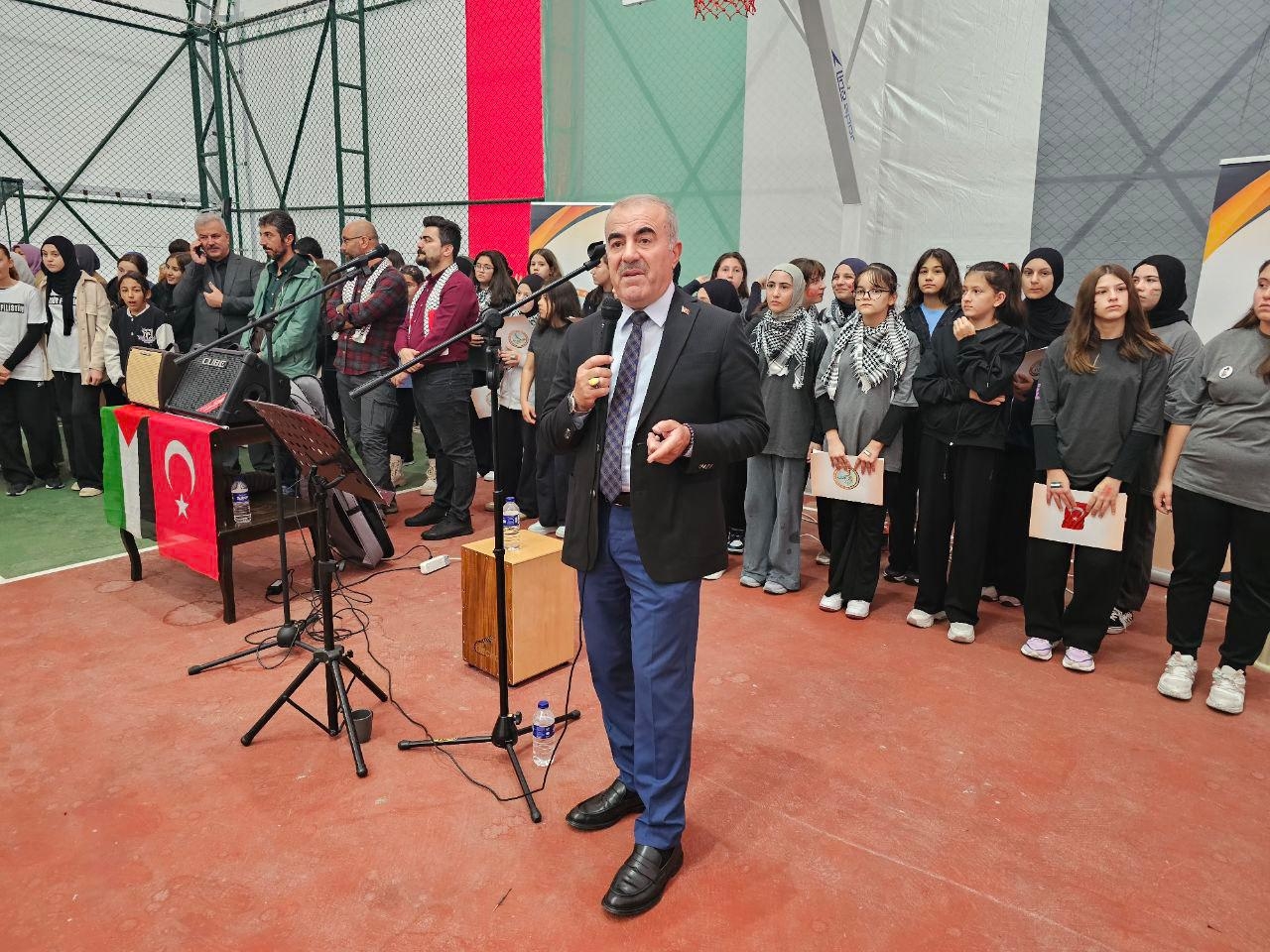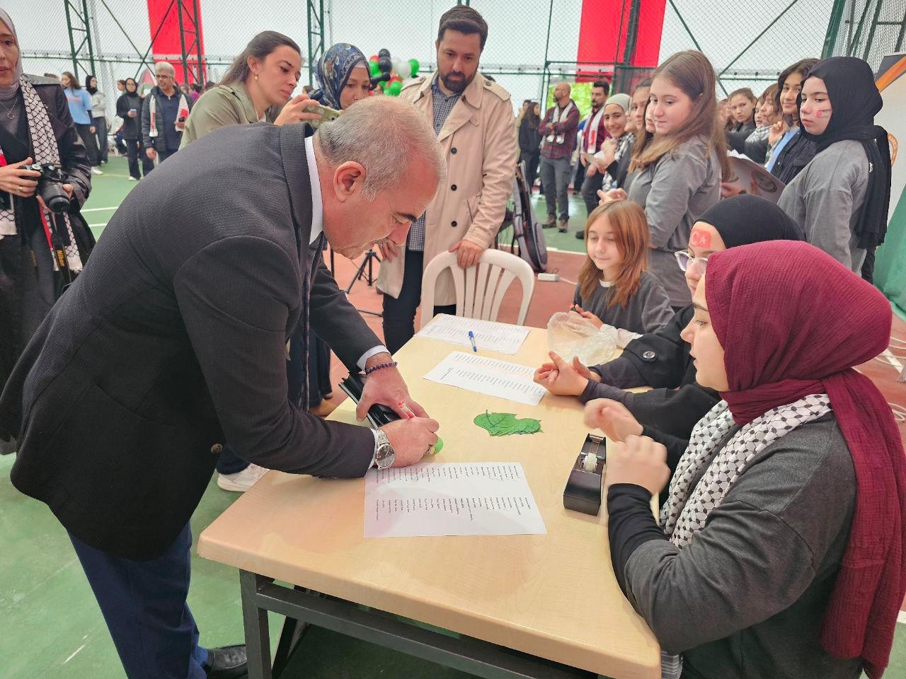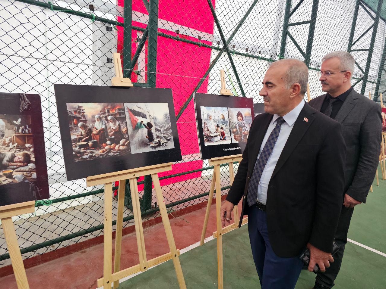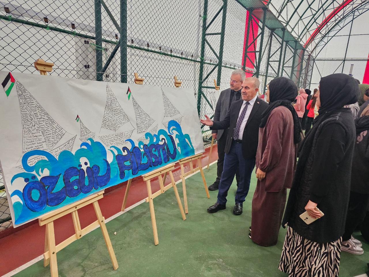 Program kapsamında öğrenciler tarafından hazırlanan Filistin ve Gazze temalı resim sergisi de büyük ilgi gördü. Sergide yer alan eserler, öğrencilerimizin duyarlılığını, vicdani farkındalığını ve barışa olan inancını yansıttı.