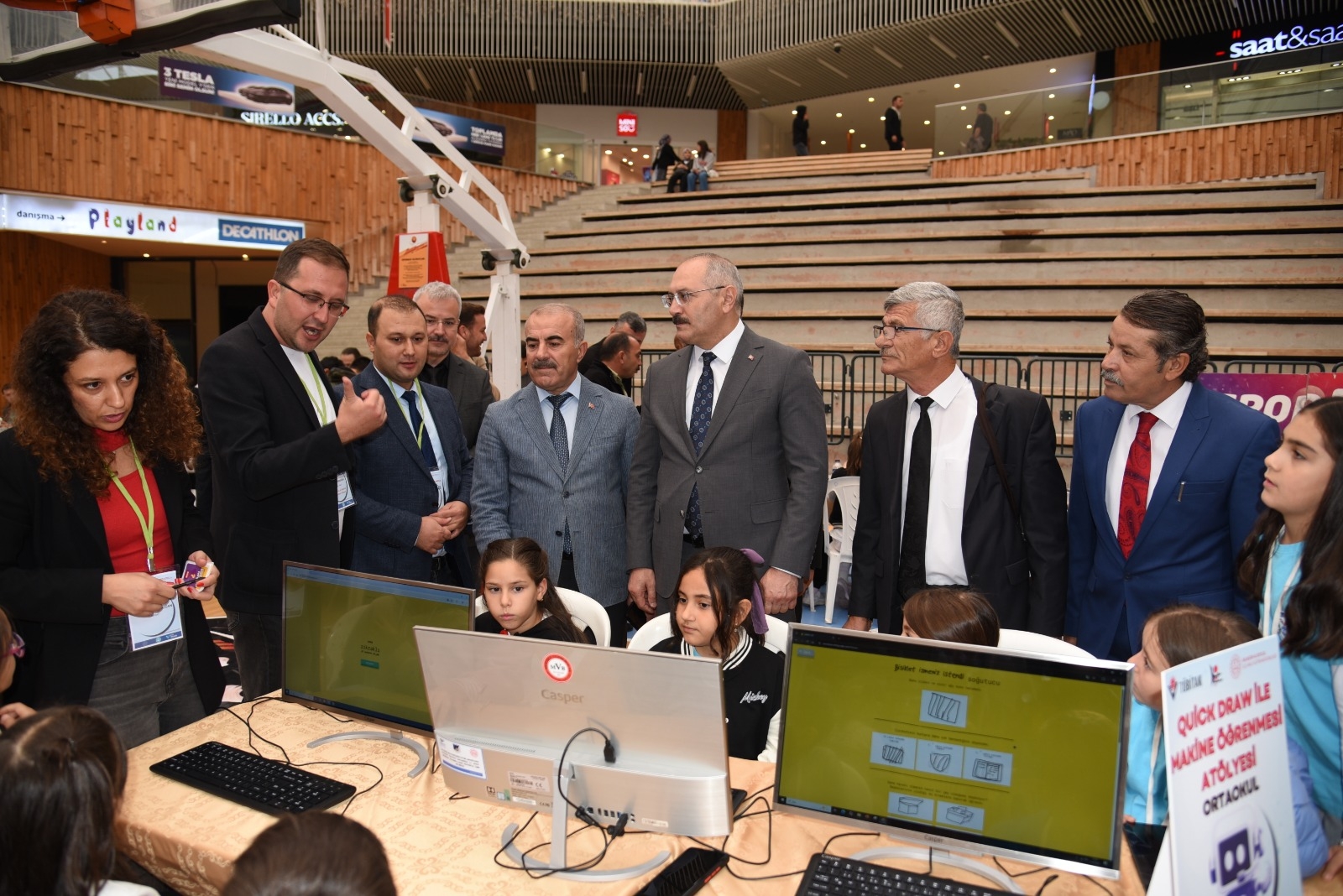 Bilimsel merakı ve keşfetme heyecanını ön plana çıkaran şenlikte; öğrencilerimizin ve öğretmenlerimizin özverili çalışmalarıyla hazırlanan birbirinden farklı projeler sergilendi. İl Millî Eğitim Müdürümüz Murat Demir, Protokol Üyeleri ile birlikte atölyeleri ziyaret ederek gençlerimizin teknoloji ve bilimle harmanladığı projeleri ilgiyle inceledi.