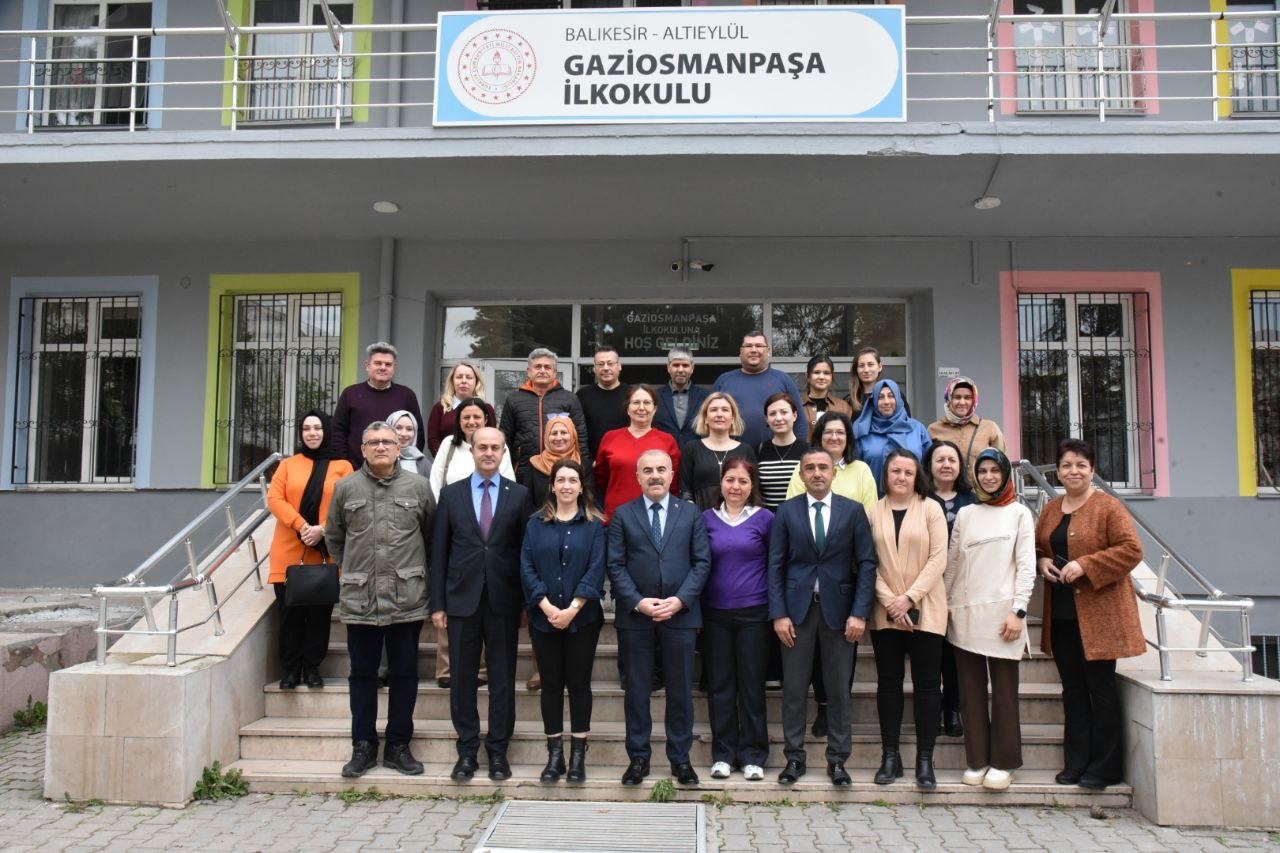 Ziyaret programı kapsamında ilk olarak, Altıeylül İlçe Milli Eğitim Müdürü Çetin Keren ile birlikte Gaziosmanpaşa İlkokulu'nu ziyaret eden İl Müdürümüz, sınıflarda öğrencilerle buluşarak onların hayallerini ve hedeflerini dinledi. Öğrencilerin samimiyeti ve enerjisinin kendilerine umut verdiğini ifade eden Müdürümüz, ardından öğretmenler odasında kıymetli öğretmenlerle bir araya geldi. Eğitim süreçlerine dair öğretmenlerin görüş ve deneyimlerini dinleyen Müdürümüz, Türkiye Yüzyılı Maarif Modeli çerçevesinde yürütülen çalışmalar hakkında değerlendirmelerde bulundu.