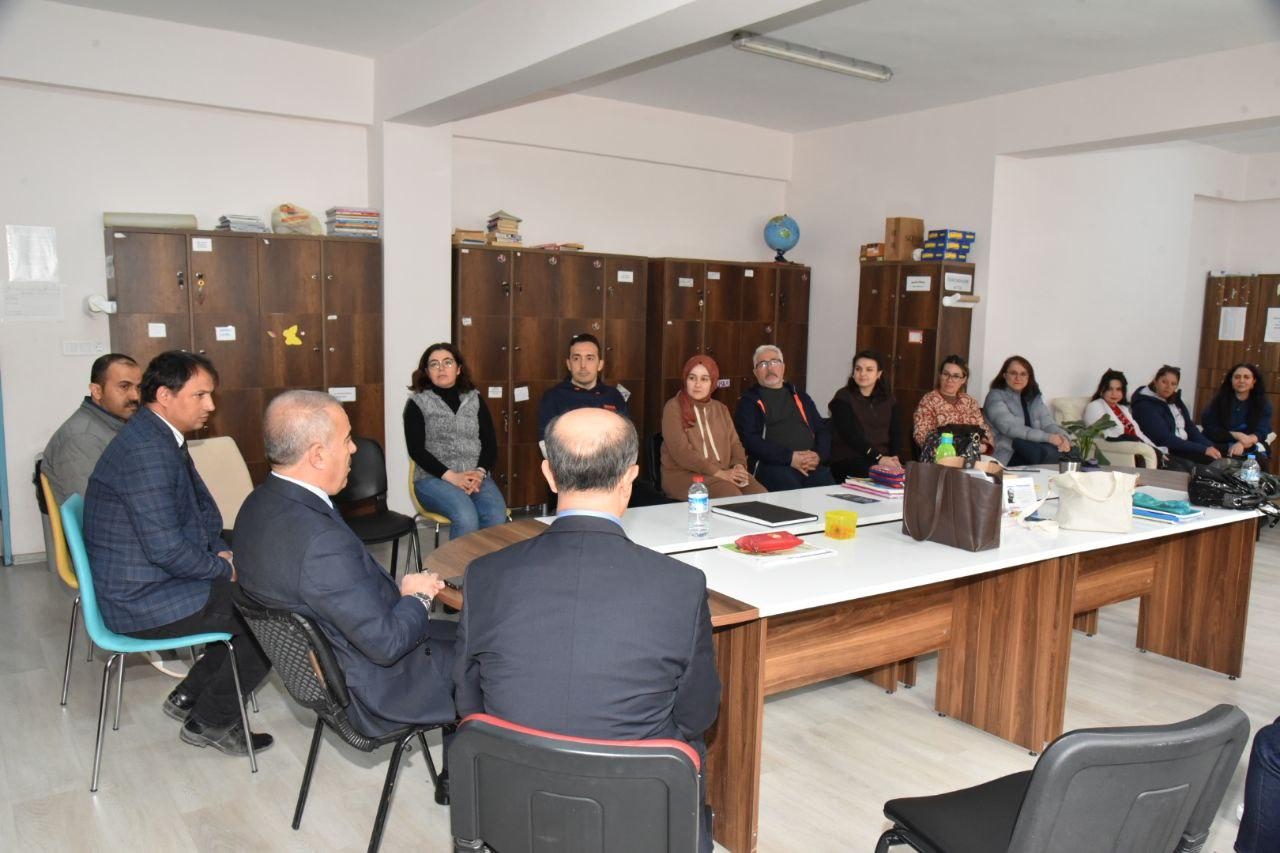 Müdürümüz Murat Demir, ziyaret ettiği tüm okullarda özveriyle görev yapan öğretmenlerimize teşekkür ederek, "Geleceğimizin teminatı evlatlarımızın daha nitelikli bir eğitim alması için tüm eğitim ailemizle birlikte çalışmaya devam edeceğiz" ifadelerini kullandı.