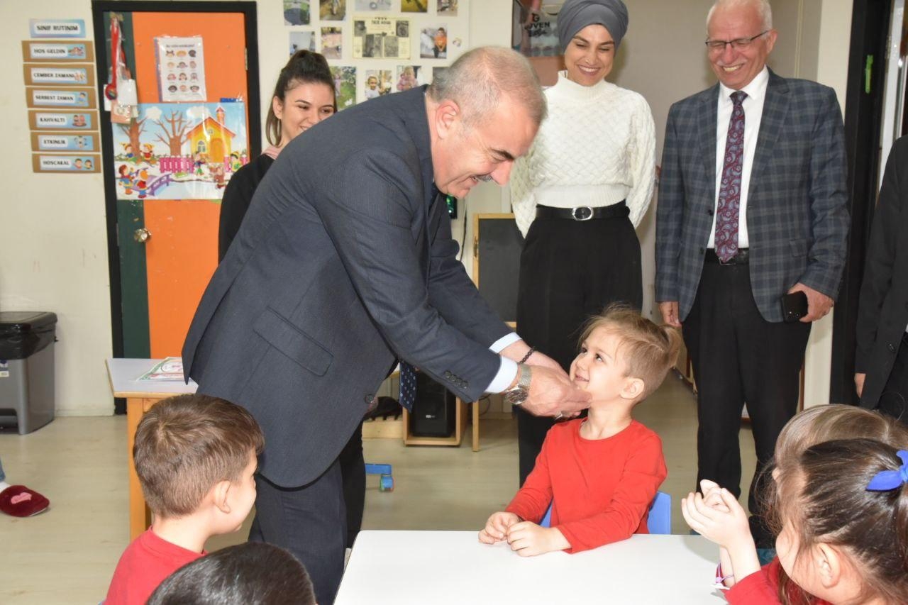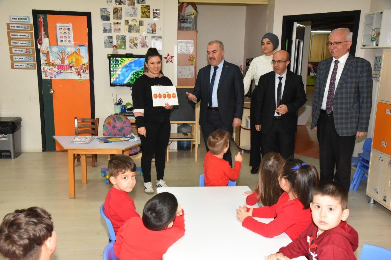 Ziyaret programının Karesi ilçesindeki durağında ise Müdürümüz Murat Demir, Karesi İlçe Milli Eğitim Müdürü Sami Günnü ile birlikte Naciye Kabakçı Anaokulu'nu ziyaret etti. Okulun tüm bölümlerini gezerek öğrencilerle sınıflarında bir araya gelen Müdürümüz, miniklerle tatlı bir sohbet gerçekleştirdi.